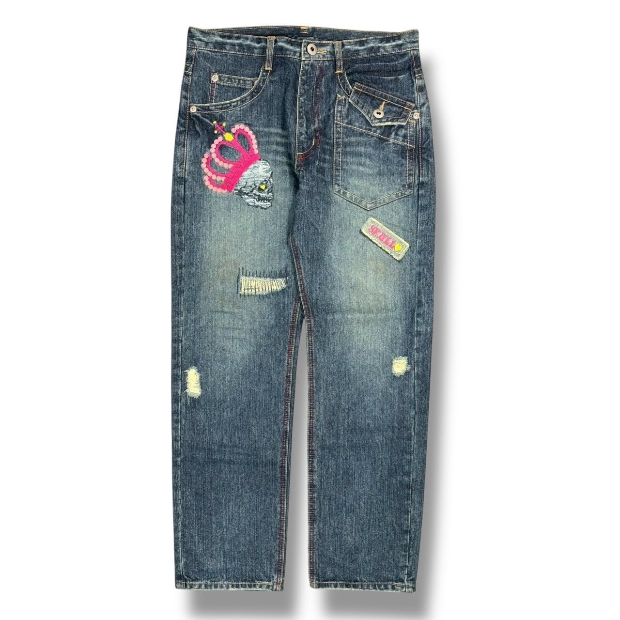 【USED】Pink crown damage denim